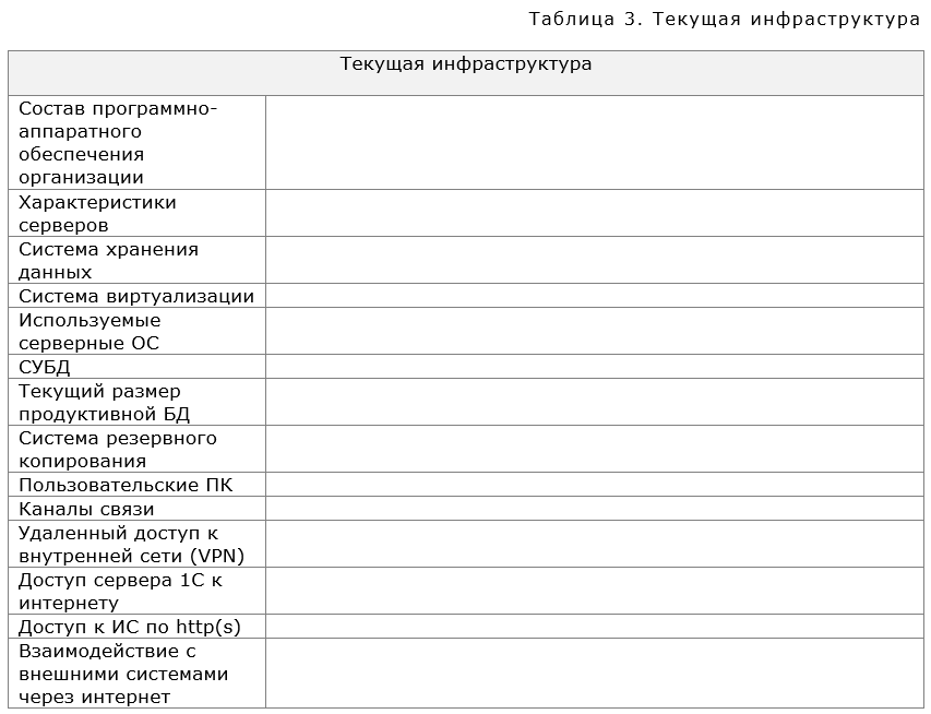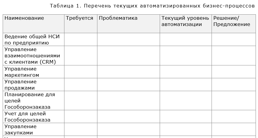 Также должна быть отрисована принципиальная схема информационно-технической инфраструктуры на момент внедрения. Ну и собран реестр автоматизируемых бизнес-процессов. По трудоёмкости он сложнее всего вышеперечисленного.