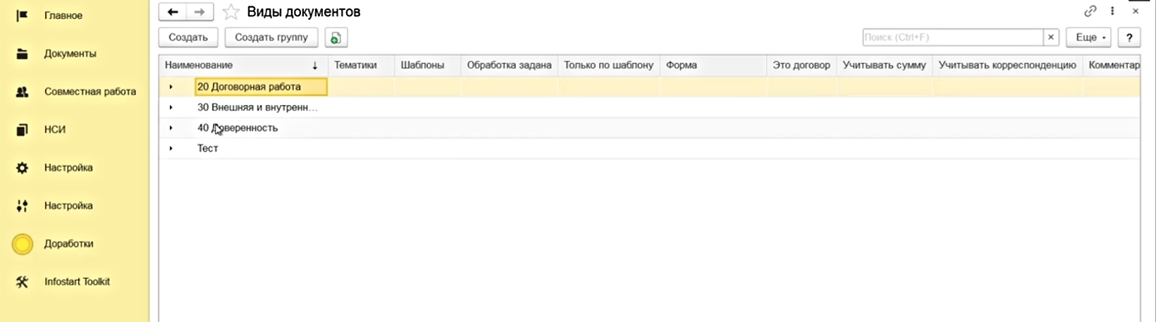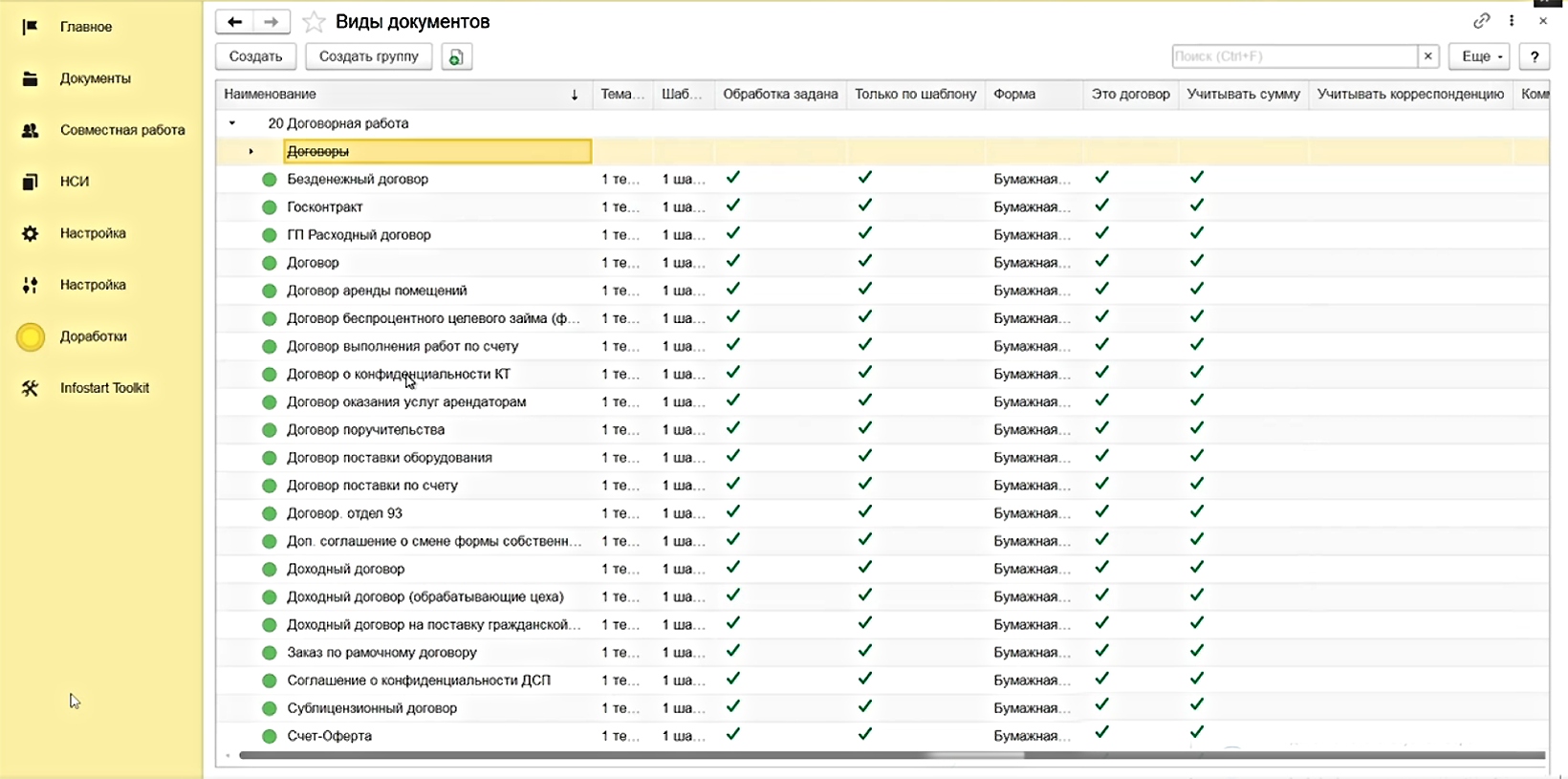 Итак, ближе к делу. Для начала нужно определиться, какие виды документов будут ходить в системе.