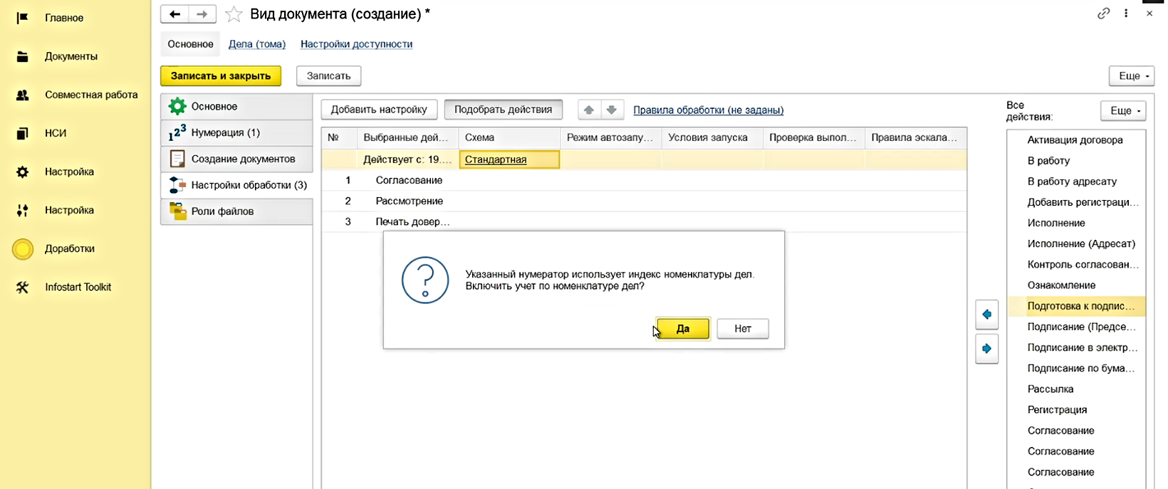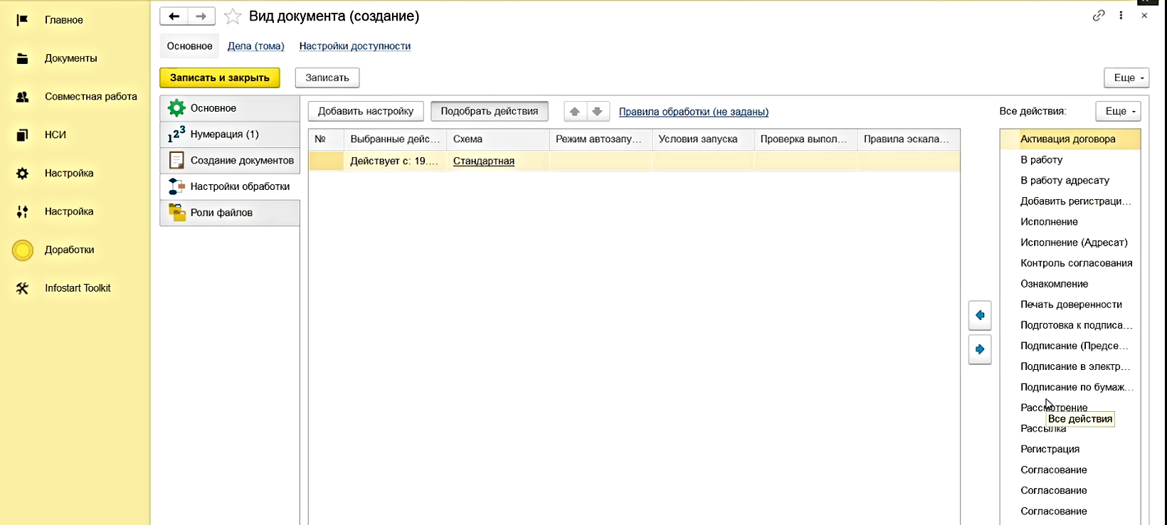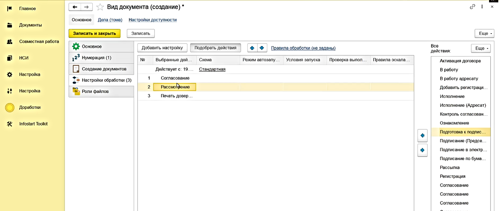 К каждому виду документов можно настроить свой индивидуальный порядок действий.